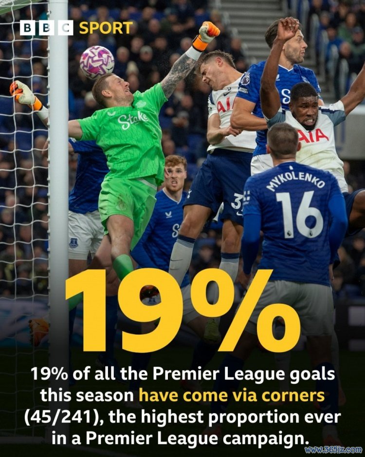 10月27日讯 本赛季英超职业联赛 的定位球破门 比率明显升高,BBC数据也证明了这一点。