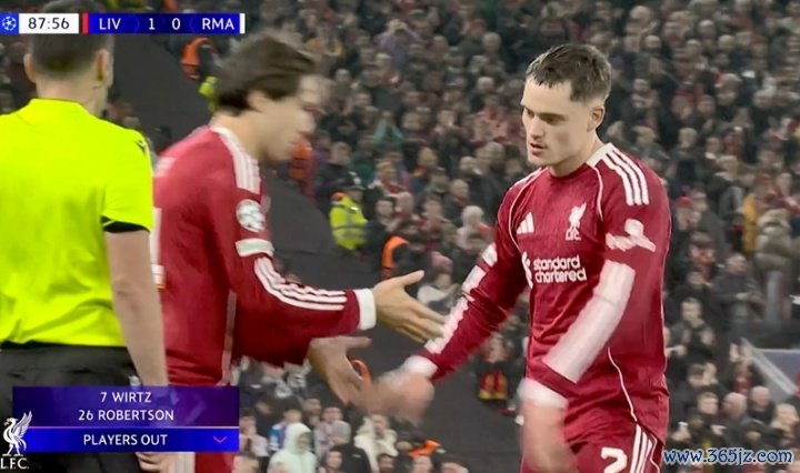 利物浦再做调整,维尔茨、罗伯逊被换下,凯尔凯兹、基耶萨登场
