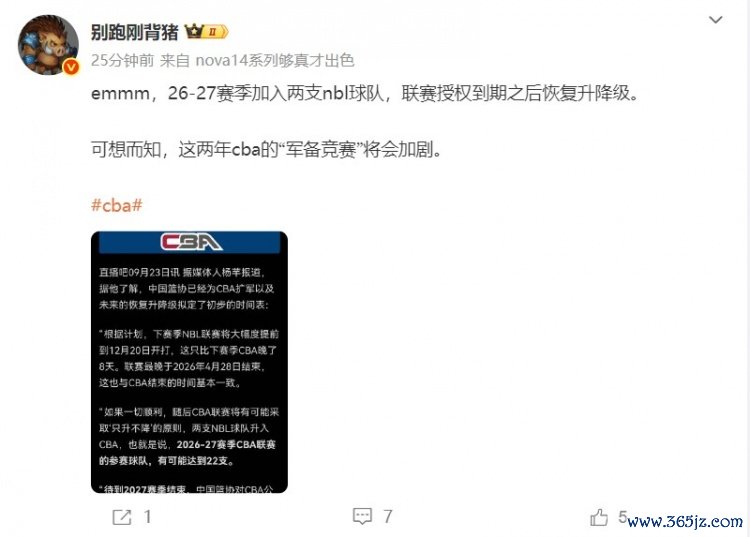 9月23日讯 今天,媒体人@别跑刚背猪 在社媒上谈到了CBA复健 升降级相关的流言。