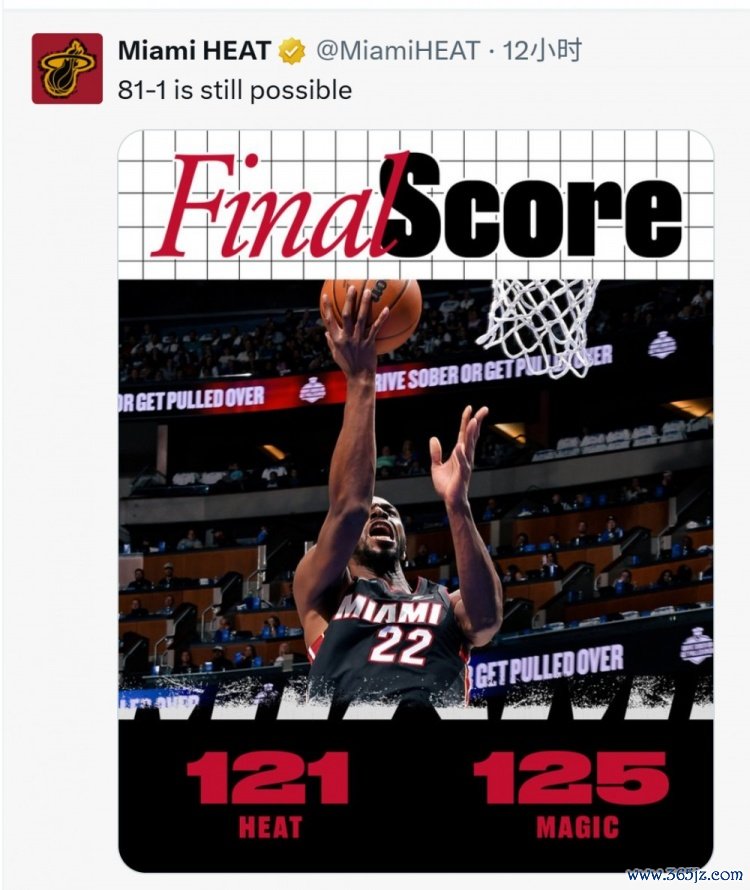 揭幕战不敌魔术!热火官方:81胜1负仍有可能