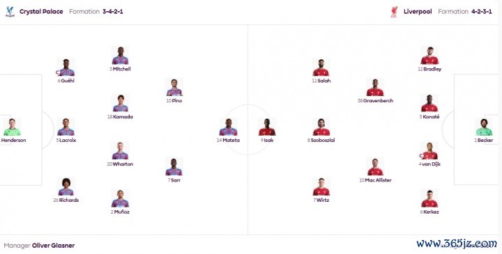 09月27日讯 利物浦vs水晶宫英超官方阵形 出炉,尤文图斯足球直播利物浦新援维尔茨首次出现在左边路。