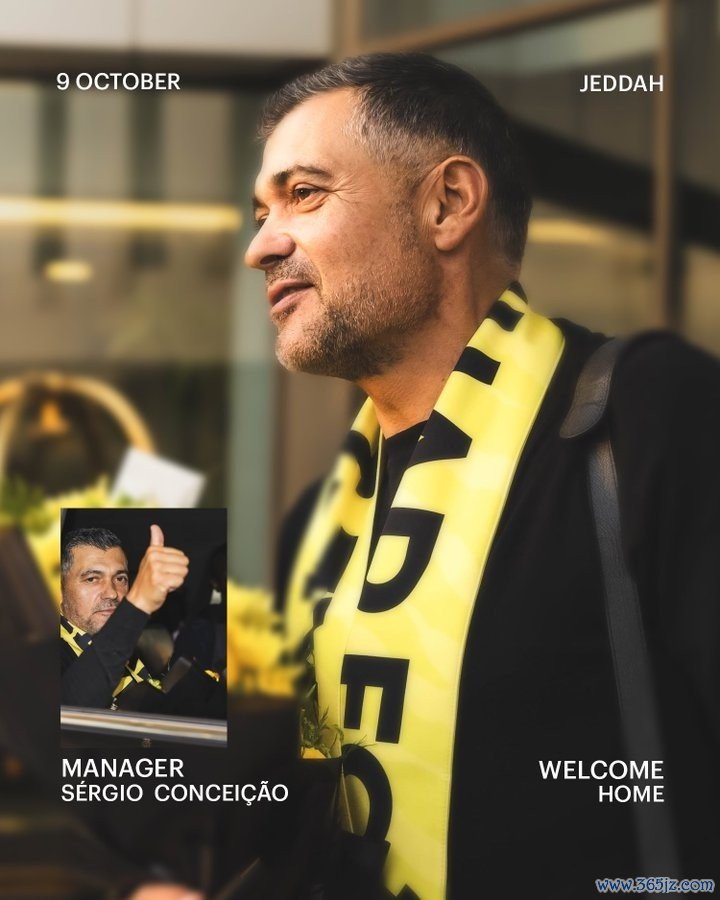 10月9日讯 吉达联合官推晒图,新帅孔塞桑已经抵达。