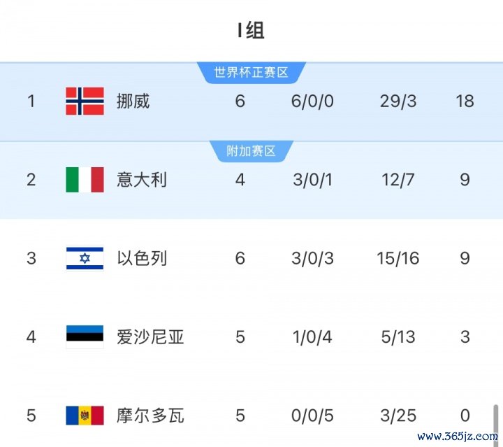 I组第二名意大利四轮后积9分, 体坛风云录英超直播只要意大利在今天晚些没能战胜爱沙尼亚,尤文图斯并且下轮也没能战胜以色列西甲直播,那么挪威将直接晋级下一轮 2026年世界杯赛 。