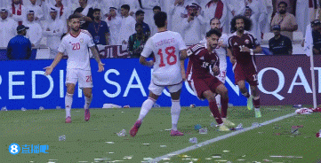 补时阶段,卡塔尔球员被撞后倒地,在地上连滚数圈