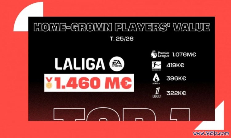 该分析指出,西甲是欧洲青年球员总市场价值最高的职业联赛 ,达到了14.6亿欧元。这一数字远超英超(10.7亿欧元)、德甲(9.6亿欧元)、意甲(8.9亿欧元)和法甲(7.6亿欧元)。