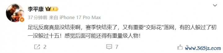 李平康:“足坛反腐真是没结束啊西甲回放免费观看, 体坛风云录英超直播赛季快结束了,尤文图斯又有重要“交际花”落网, 搏击资讯有的人躲过了初一没躲过十五!感觉后面可能还得有重量级人物!”