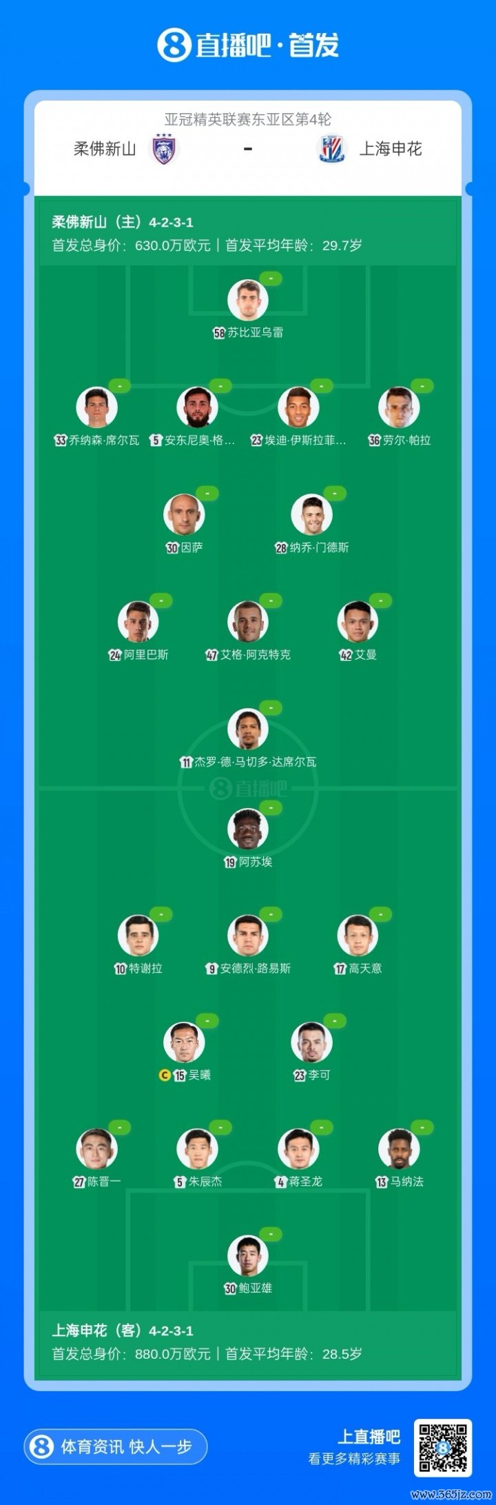 申花客战柔佛杆位:申花主力出战!特谢拉路易斯先发,柔佛8外援