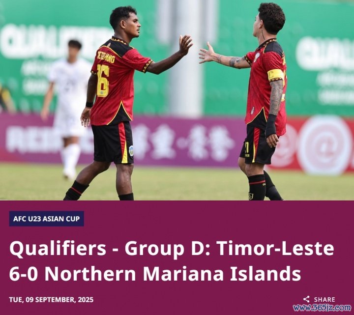 09月09日讯 U23亚洲杯预选赛第3轮,东帝汶6-0大胜北马里亚纳群岛,以小组第三结束预选赛征程。