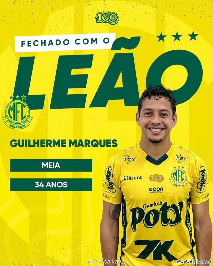 官方:巴甲球队米拉索尔签下34岁吉列尔梅,球员此前效力长春亚泰