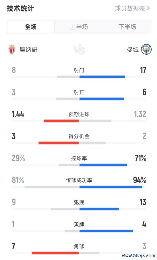 全场赛事 数据如下: