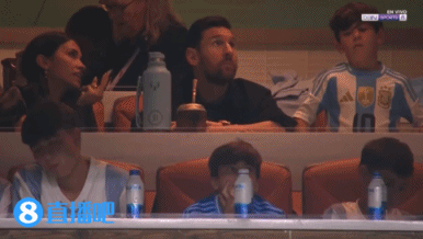 阿根廷在迈阿密对阵委内瑞拉,梅西一家看台观战,身前放着马黛茶